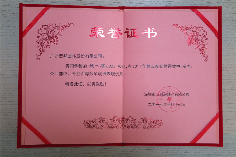 多年來,我司憑借豐富的施工經(jīng)驗,為萬科打造出大批園林景觀精品,屢次獲得萬科嘉獎,雙方建立起互相信任的親密合作關(guān)系。本次表彰不僅代表深圳萬科對我司施工品質(zhì)的再次肯定,同時,也激勵我司繼續(xù)發(fā)揚(yáng)實干精神,再接再厲!