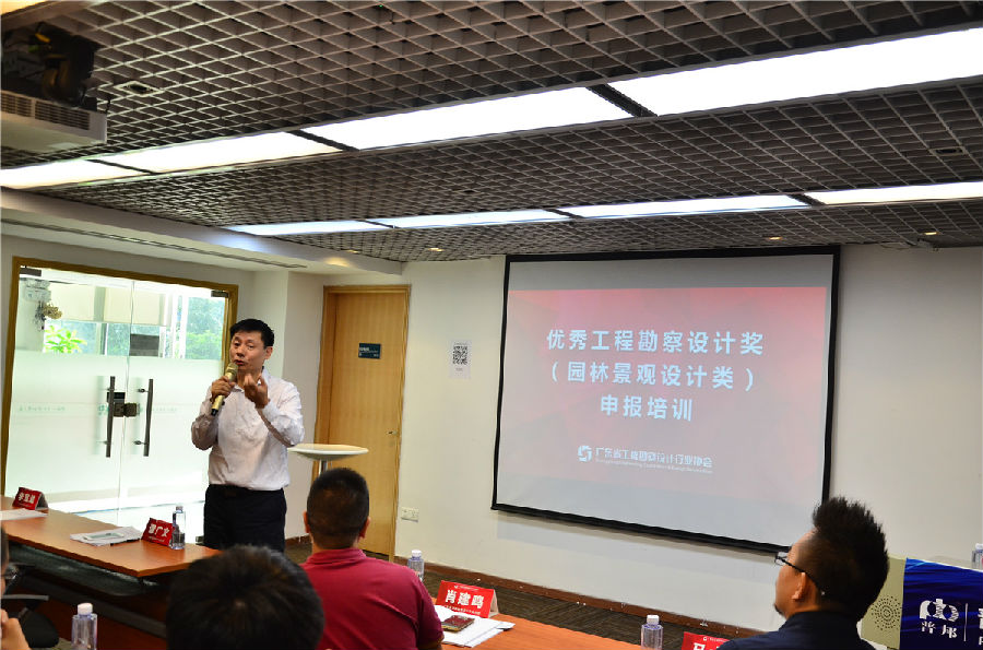 10月18日下午,廣東省工程勘察設計行業(yè)協(xié)會(以下簡稱省勘協(xié))風景園林專業(yè)委員會(以下簡稱專委會)在我司總部三樓大會議室舉辦優(yōu)秀工程勘察設計獎(園林景觀類)申報培訓會。大會邀請省勘協(xié)行業(yè)發(fā)展部部長肖建鳴先生,我司集團副總裁、研發(fā)中心主任、專委會主任委員譚廣文先生,生態(tài)環(huán)境事業(yè)部執(zhí)行副總裁、生態(tài)設計院總工程師、專委會委員李宜斌先生擔任大會主講嘉賓,會議由專委會秘書長馬士龍先生主持,29家單位共50余人報名參加。