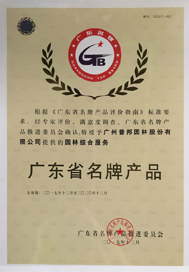 5月10日是“中國(guó)品牌日”,廣東質(zhì)量品牌提升高峰論壇暨省名牌頒獎(jiǎng)儀式在廣州舉行,為“2017年廣東省名牌產(chǎn)品”獲獎(jiǎng)企業(yè)授牌。經(jīng)過(guò)層層把關(guān)多輪角逐,憑借良好的企業(yè)品牌形象和服務(wù)質(zhì)量,我司“園林綜合服務(wù)”榮獲“2017年度廣東省名牌產(chǎn)品”榮譽(yù)稱(chēng)號(hào)。