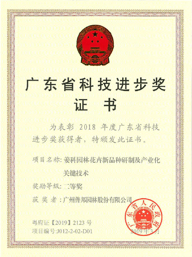 近日,由廣東省委、省政府組織召開全省科技創(chuàng)新大會上,由我司主持,聯(lián)合仲愷農(nóng)業(yè)工程學(xué)院、廣州市農(nóng)業(yè)技術(shù)推廣中心、華南農(nóng)業(yè)大學(xué)、中國科學(xué)院華南植物園、珠海市現(xiàn)代農(nóng)業(yè)發(fā)展中心等單位參與,申報的《姜科園林花卉新品種研制及產(chǎn)業(yè)化關(guān)鍵技術(shù)》項目,榮獲廣東省科技進步獎二等獎,標志著我司研發(fā)實力再獲省級認可,在華南特色花卉領(lǐng)域研究獲新突破。