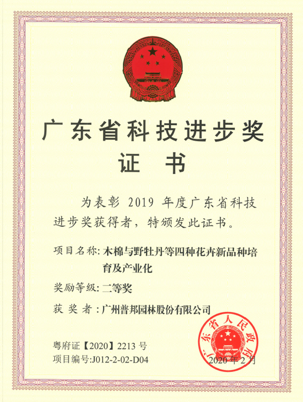 近日,廣東省科技創(chuàng)新大會(huì)在廣州召開,大會(huì)公布了2019年度廣東省科學(xué)技術(shù)獎(jiǎng)獲獎(jiǎng)名單,由廣州市林業(yè)和園林科研院牽頭,華中農(nóng)業(yè)大學(xué)、中山大學(xué)、廣州普邦園林股份有限公司、廣州市名卉景觀科技發(fā)展有限公司、廣州市嘉卉園林綠化建筑工程有限公司等合作完成的科研課題《木棉與野牡丹等四種花卉新品種培育及產(chǎn)業(yè)化》榮獲廣東省科學(xué)技術(shù)進(jìn)步獎(jiǎng)二等獎(jiǎng)。