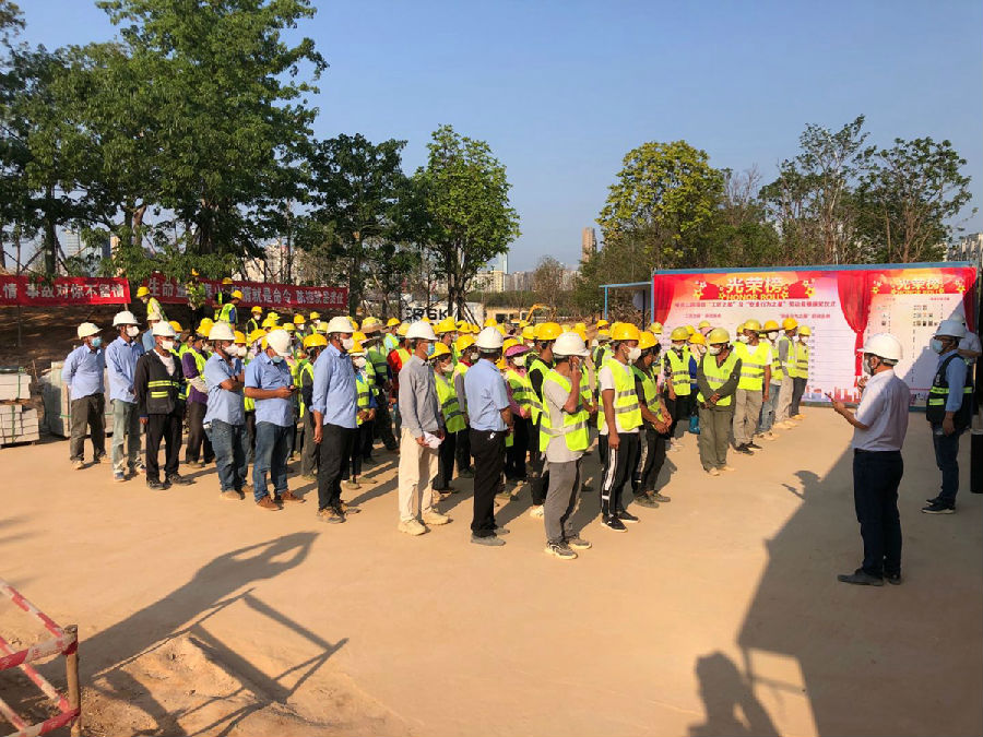 評獎考核當天,首先由前海項目部領導對創(chuàng)建“雙優(yōu)”工地的實施情況、創(chuàng)新亮點、疫情爆發(fā)以來的防控措施向深圳市建筑協(xié)會的專家進行詳細匯報,建設單位及監(jiān)理單位對項目創(chuàng)建“雙優(yōu)”工地的實施情況表示肯定并同意本工程申報深圳市“雙優(yōu)”工地。隨后在項目主要領導、集團工程管理中心監(jiān)察部代表、建設單位代表、監(jiān)理單位代表的陪同下,專家組對前海項目部和施工現(xiàn)場分別進行檢查,參照深圳市有關標準對標準化防護、封閉式管理、安全管理、文明施工、施工用電、材料管理、消防設施、疫情防控管理和內(nèi)業(yè)資料完備情況進行了全面評定。通過實地檢查、內(nèi)業(yè)資料復核、聽取匯報等形式考核后,專家組對前海項目部建設、現(xiàn)場的各項安全文明措施、疫情防控工作、內(nèi)業(yè)完備程度給予了高度評價,一致認定前海項目部各項安全生產(chǎn)、文明施工管理工作滿足考核標準相關要求,滿足“雙優(yōu)工地”評選條件。